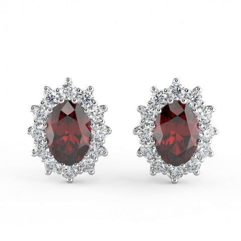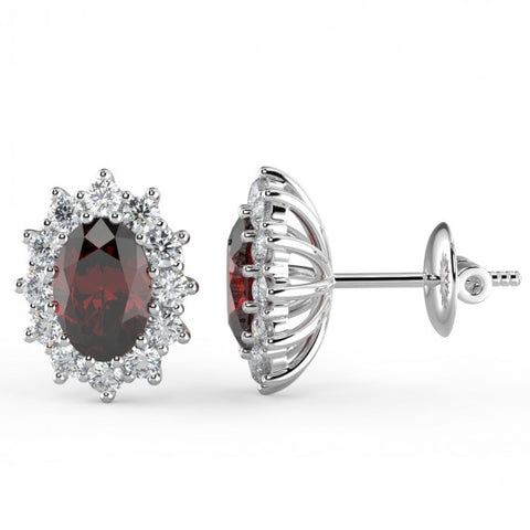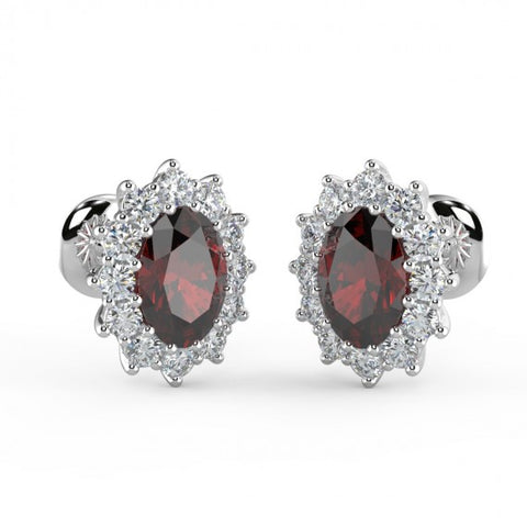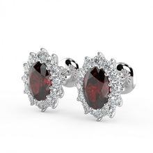 1.00 CT RUBY & DIAMOND CLUSTER EARRING HEAVY WHITE GOLD