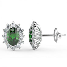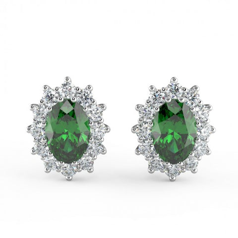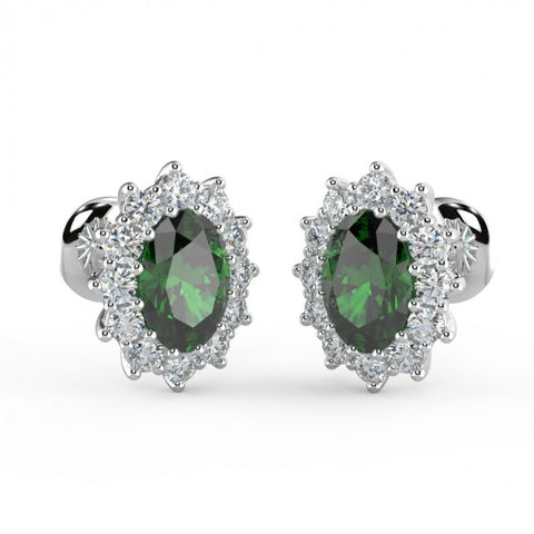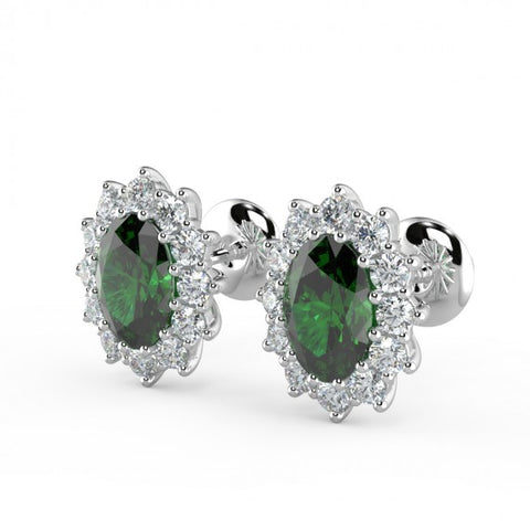 1.00 CT EMERALD & DIAMOND CLUSTER EARRING HEAVY WHITE GOLD