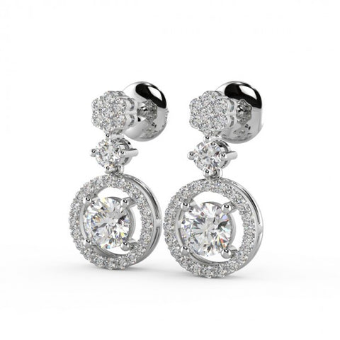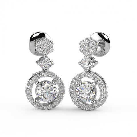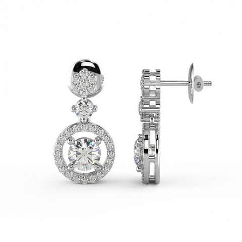 0.70CT ROUND DIAMOND DANGLE DROP EARRINGS IN 18K WHITE GOLD