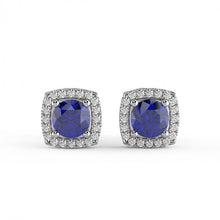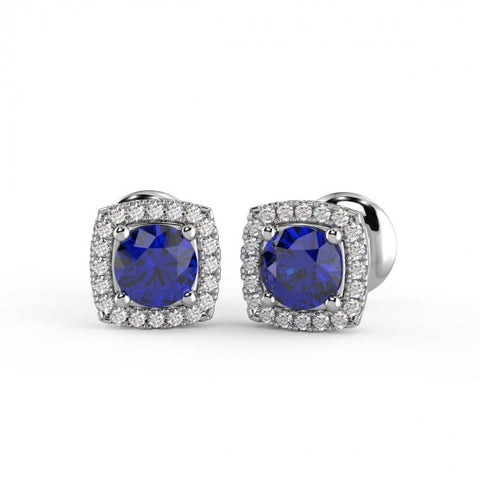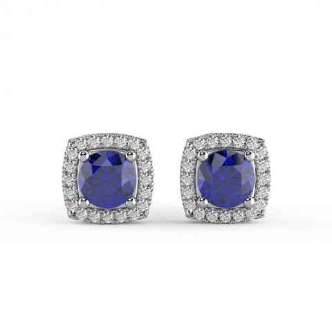 0.60 CT SAPPHIRE & DIAMOND HALO EARRING CRAFTED IN 18K WHITE GOLD