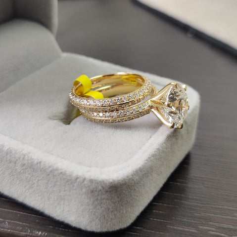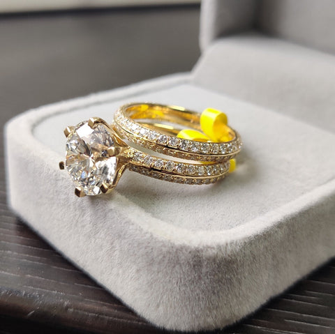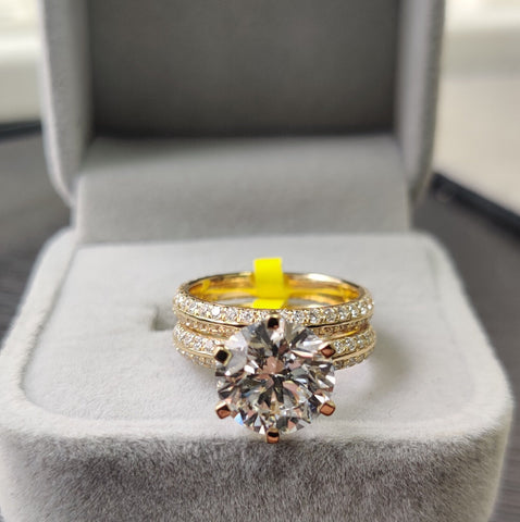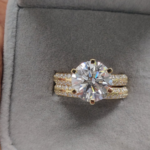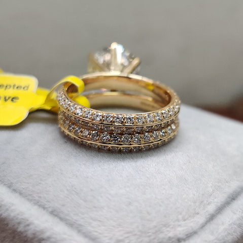 IGI Certified 6.03 Ct Lab Grown Huge Round Diamond Bridal Set Engagement Ring In 18k Yellow Gold