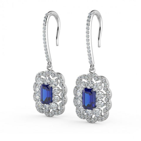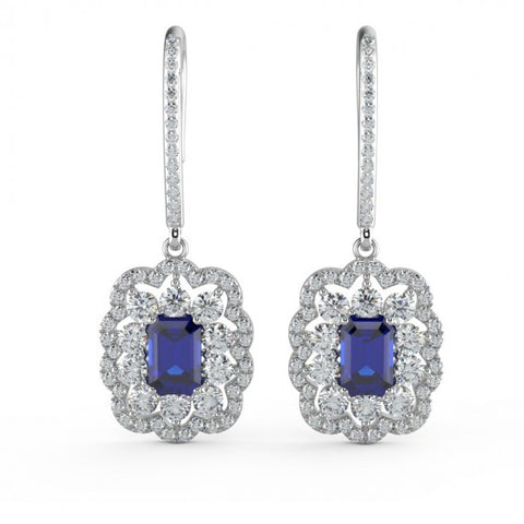 100% NATURAL BLUE SAPPHIRE & DIAMOND DESIGNER EARRINGS