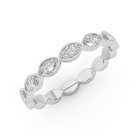 Natural Marquise Diamond Bezel Set Eternity Wedding Ring - 0.70 Carat