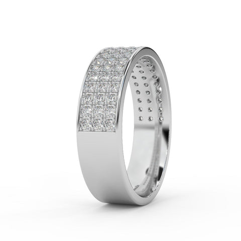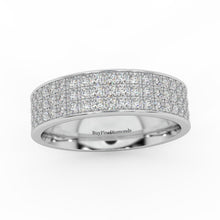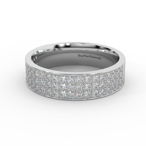 Three Row Pave Set Natural Round Diamond Wedding Band - 2.00 Carat